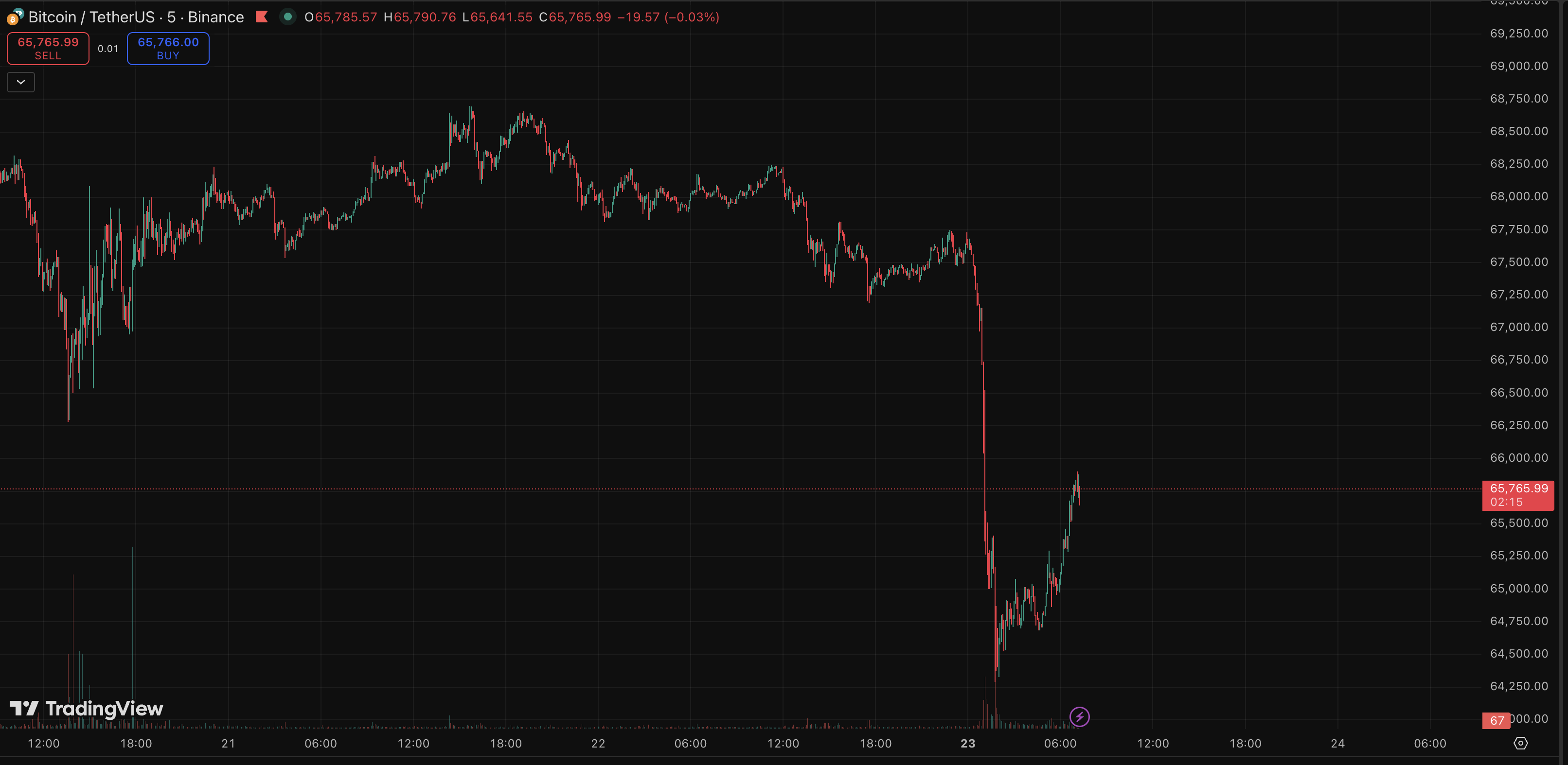 Bitcoin dropped from around $67,600 to below $65,000 in less than two hours, wiping out more than 4% of its value. The move didn’t stay isolated.