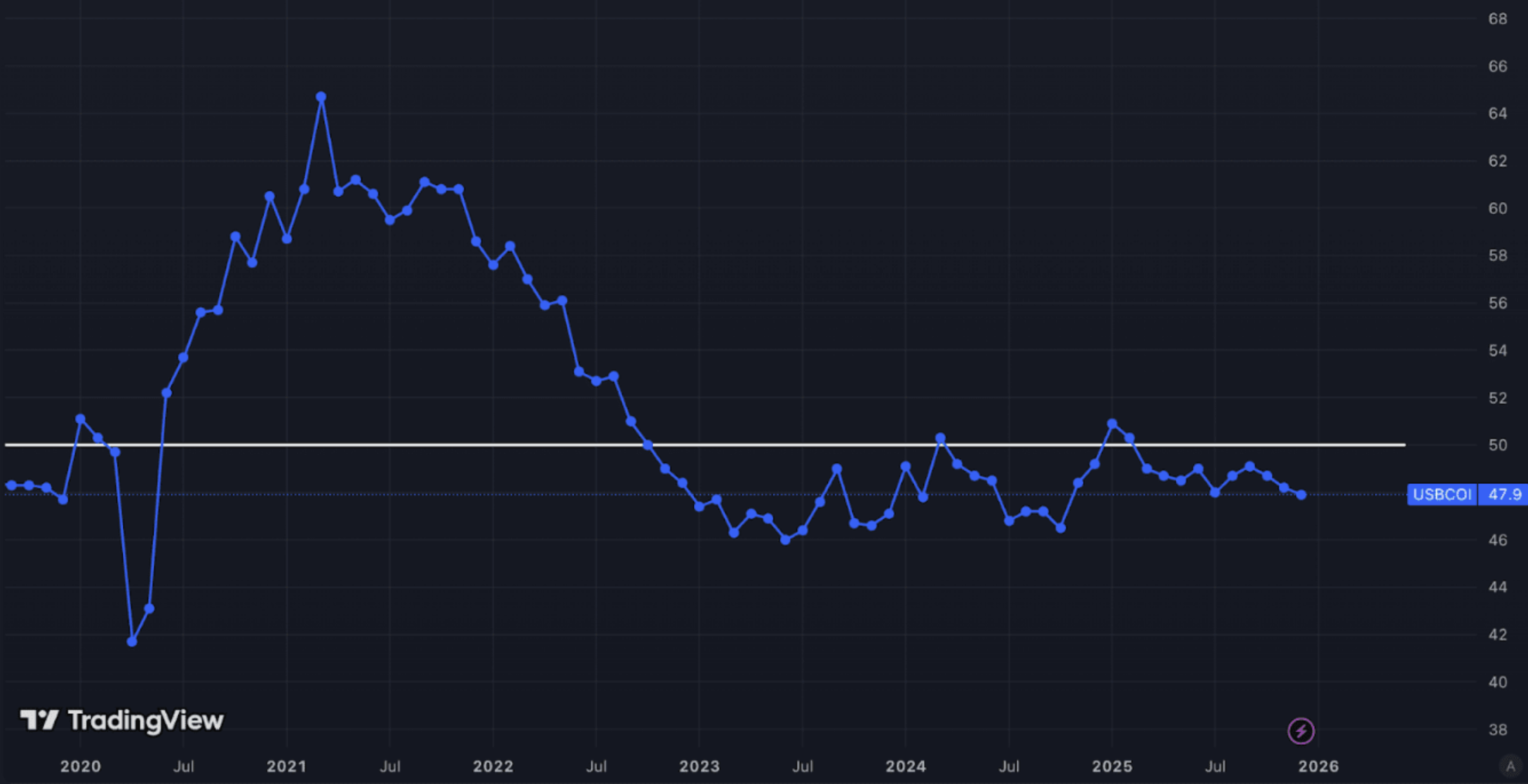 PMI above 50 signals an expanding U.S. economy, which is usually a positive sign for risk assets.