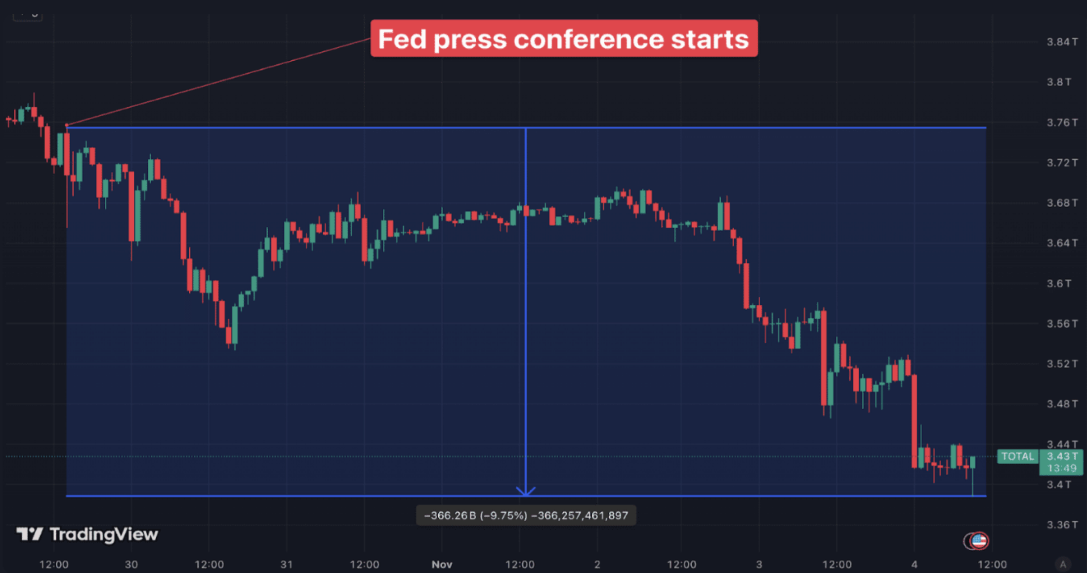 Total crypto market capitalization fell by nearly 10% within a few days after the Fed press conference.