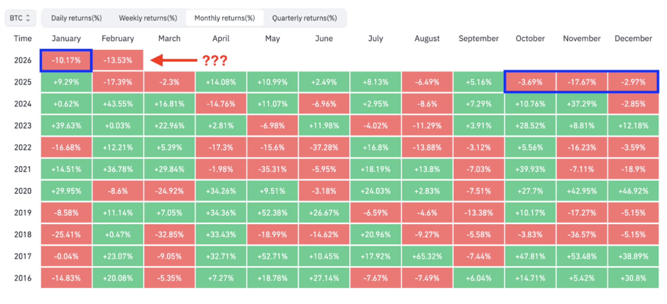 Историческият „рекорд“ на BTC е 6 поредни червени месеца (август – януари 2018/2019).