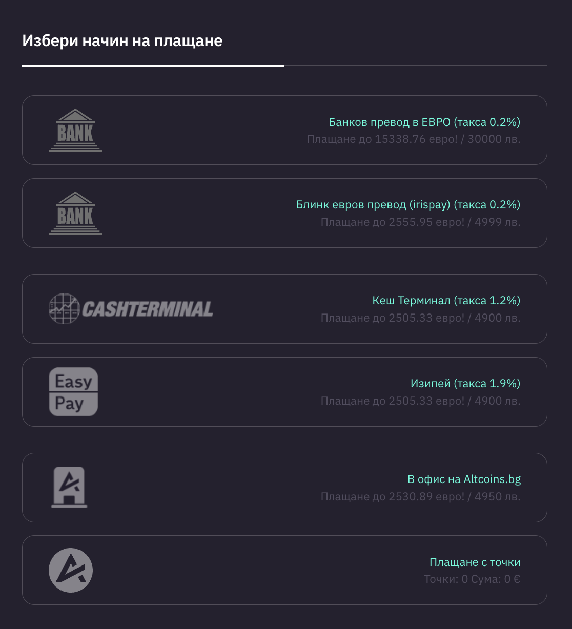 След това изберете предпочитания от вас метод на плащане: