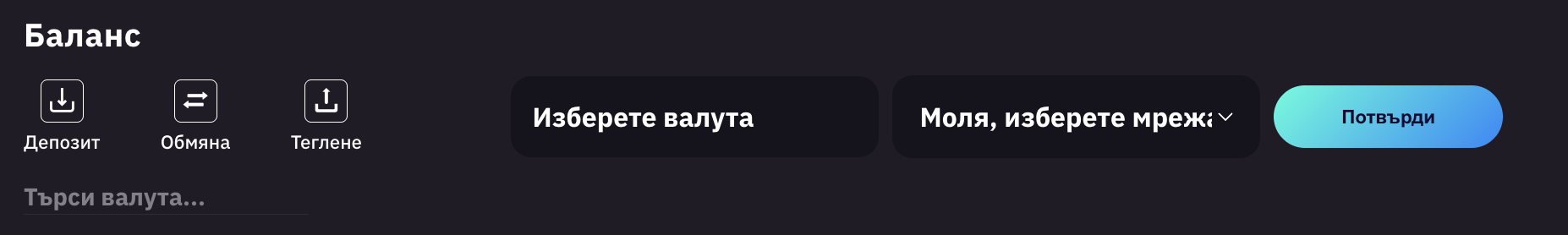 Изберете желания криптоактив:
