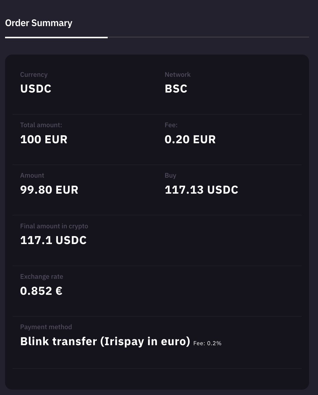 - Create your order: Choose the amount and the crypto you want, then proceed to the payment method selection as usual.
