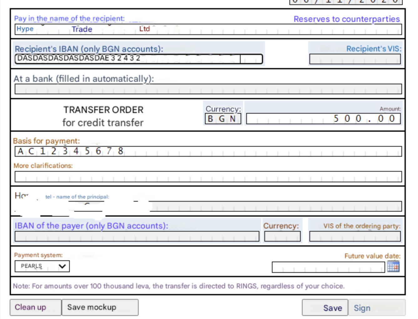 After completing the payment order, sign it (usually with a token or SMS code) and submit it to your bank for execution.