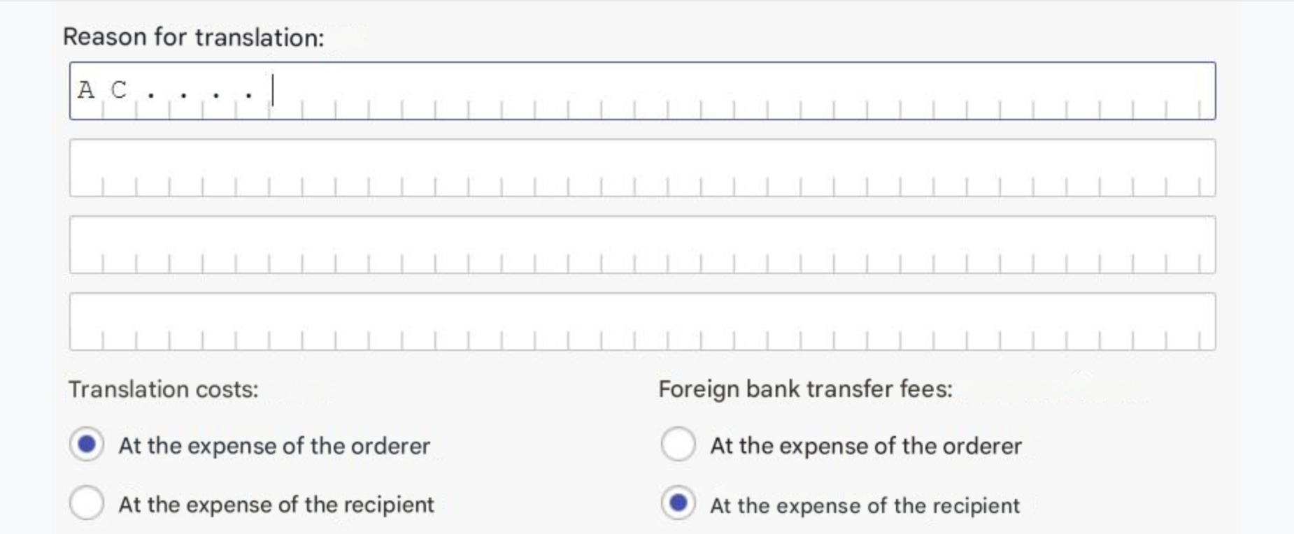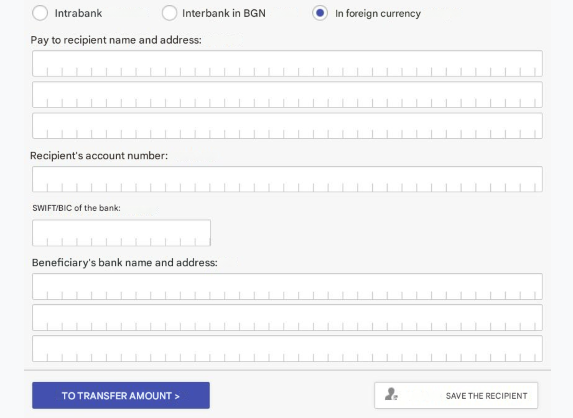 Type the recipient’s name, address, account number, and IBAN.
