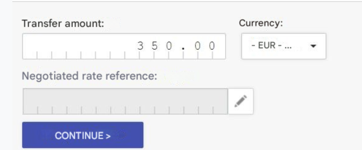 Enter the amount to transfer and select euro as the currency.