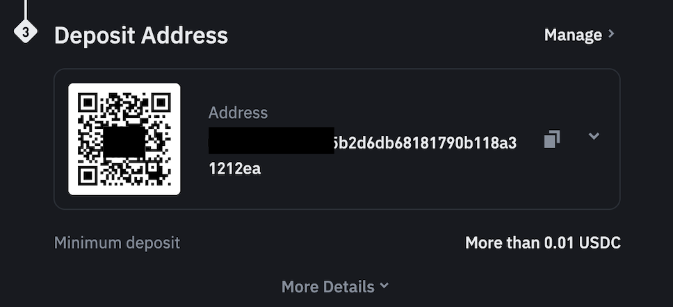 For this example, we’ll use a Binance account and the USDC currency. We chose this currency because it’s a stablecoin, ensuring no loss of value between placing the order and receiving the crypto coins in the exchange.